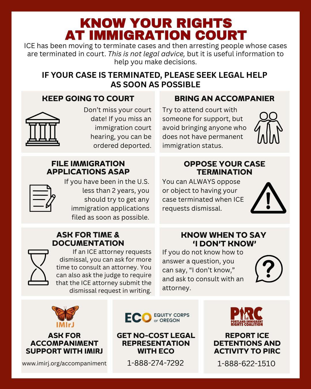 The Portland Immigrant Rights Coalition maintains a library of resources about your rights as an immigrant. See that page for an up-to-date list of resources.